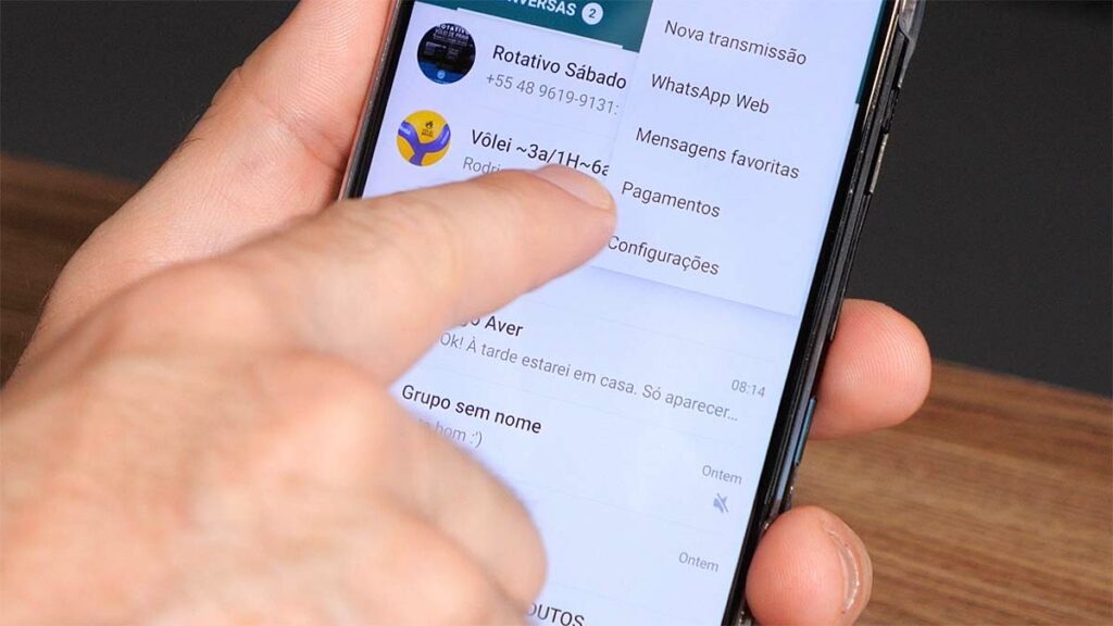 Atualização feita, você abre o aplicativo e vai nos três pontinhos no canto superior direito. Se entre as opções aparecer a de “Pagamentos”, significa que o recurso está disponível pra você. Se não aparecer, continua neste post que eu vou te mostrar como forçar o WhatsApp a te mostrar essa opção.