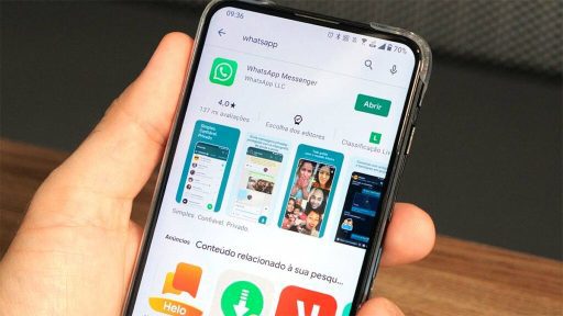E como que você faz pra usar? Esse é um recurso que não está disponível pra todo mundo ainda – não ao menos até a publicação desse vídeo. É uma atualização que vai ser liberada em lotes. Pra verificar se o WhatsApp pagamentos já está disponível pra você, primeiro você verifica que está com a última versão do aplicativo, indo na playstore. Se aparecer a opção “abrir”, você já está com a última. Se não, vai aparecer o botão de atualizar.