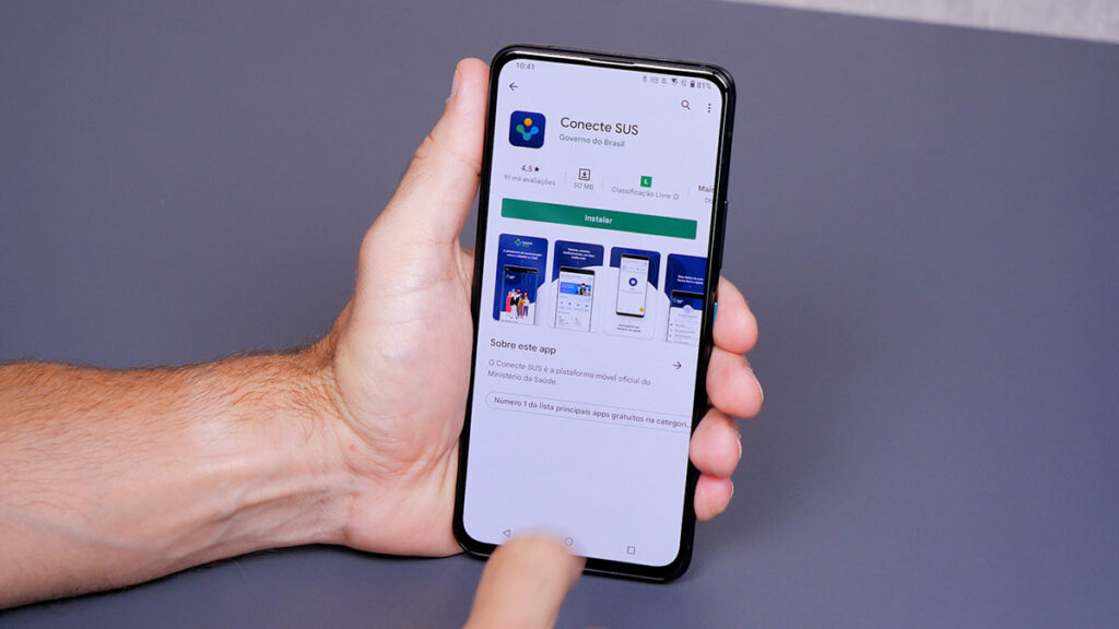 O certificado de vacinação contra COVID-19 é emitido através do aplicativo Conecte SUS. Então o primeiro passo é procurar pelo app na play store e fazer o download dele.